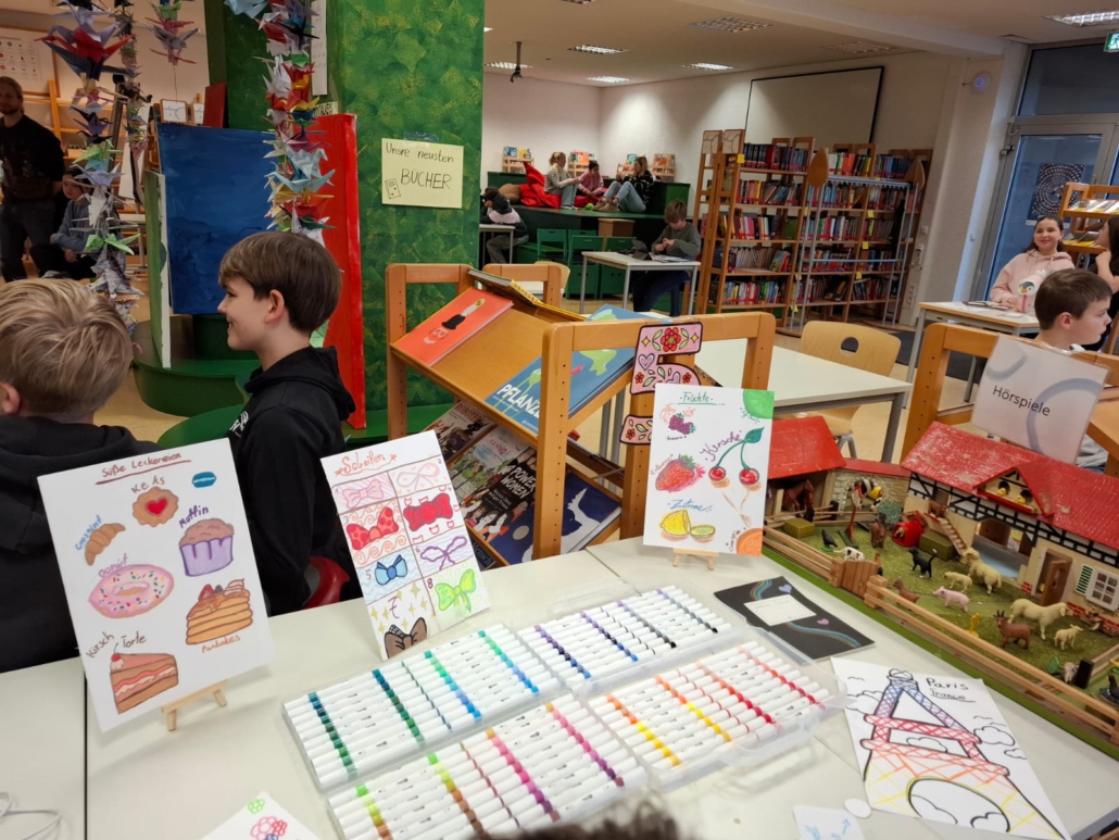 Im ersten Halbjahr dieses Schuljahrs erlebten die Klassen 6a, 6b und 6c Kunst mal anders. Die Schülerinnen und Schüler konnten sich in eines von fünf Projekten einwählen: „Farbe“, „Tanz“, „Trickfilm/Stop Motion“, „Kreatives Schreiben“ oder „Natur und Wolle“. In jedem der Projekte war viel Raum für Kreativität, Zusammenarbeit und selbstständiges Arbeiten. Die freie Wahl der Projekte ermöglichte es, eigene Interessen zu verfolgen und neue Fähigkeiten an sich zu entdecken. Den Abschluss der Projektphase bildete eine gemeinsame Präsentation der Ergebnisse. In der Bibliothek fand ein von Schülerinnen und Schülern eigenständig organisierter Gallery Walk statt, bei dem alle ihre Projekte vorstellten. Mitschülerinnen und Mitschüler sowie Lehrkräfte hatten dabei die Möglichkeit, die Ergebnisse zu betrachten, ins Gespräch zu kommen, Fragen zu stellen und die Vielfalt der Projekte zu erleben.